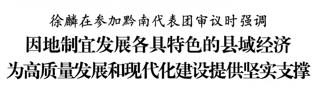 1月22日,省委书记、省人大常委会主任徐麟参加省十四届人大三次会议黔南代表团审议。他强调,要深入贯彻中央经济工作会议精神,认真落实习近平总书记关于贵州工作重要讲话重要指示精神,坚持因地制宜、发挥优势、分类指导,大力发展各具特色的县域经济,为高质量发展和现代化建设提供坚实支撑。省领导李元平、郭锡文、王世杰、蔡朝林参加审议。