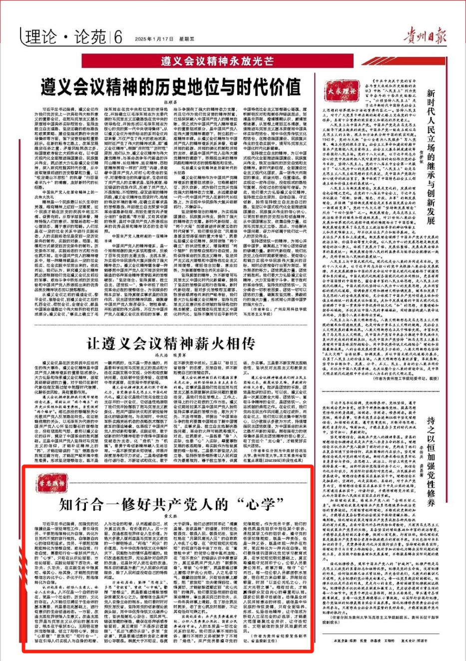 《贵州日报》刊发黄文胜同志署名文章: 知行合一修好共产党人的“心学”