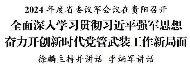 11月15日,2024年度省委议军会议在贵阳召开。会议强调,要全面深入学习贯彻习近平强军思想,坚决贯彻中央军委政治工作会议精神,聚焦打好实现建军一百年奋斗目标攻坚战,进一步加强人民武装工作,奋力开创新时代党管武装工作新局面。 省委书记、省人大常委会主任、省军区党委第一书记徐麟主持会议并讲话。省委副书记、省长、省国防动员委员会主任李炳军讲话。省委常委,省政府、省军区有关负责同志参加。省军区政治委员吴贺宪、省国动办负责同志分别汇报全省国防动员和后备力量建设、全省民兵军事训练基地建设情况。 徐麟指出,去年省委议军会议以来,全省军地各级坚决贯彻习近平总书记关于国防和军队建设的重要指示精神,同心协力、担当作为,思想政治引领取得新成效,国动援战准备实现新突破,动员转型发展迈出新步伐,双拥共建工作展现新作为,从严管党治军彰显新气象,全省国防动员和后备力量建设各项工作取得显著成效。 徐麟强调,要全面贯彻习近平强军思想,认真落实党的二十届三中全会关于深化国防和军队改革的重要部署,推动全省国防动员和后备力量建设高质量发展,为国防和军队现代化建设作出贵州贡献。要贯彻落实新时代政治建军方略,始终铸牢政治忠诚,切实强化理论武装,大力传承红色基因,坚决贯彻军委主席负责制,确保习主席和中央军委决策部署不折不扣落地落实。要聚力深化作战训练,编实建强后备力量,做细做实援战准备,不断提升支援保障打赢能力。要强化军地协同深化国防动员改革,突出规划牵引,规范机制运行,完善国防教育体系,不断释放改革效能。要深化双拥共建,持续拓展军民融合,用心用情解决退役军人安置、随军家属就业、军人子女入学等急难愁盼问题,不断巩固军政军民团结。全省各级党委要认真履行人民武装主体责任,军地有关部门要强化担当,凝聚强大工作合力。 李炳军指出,要牢记国防动员“国之大者”,进一步增强责任感紧迫感,加快建设高效运转的国防动员体系,统筹抓好战略物资储备、新域新质能力建设、训练演练等各项工作,为国防和军队现代化建设作出更多贡献。
