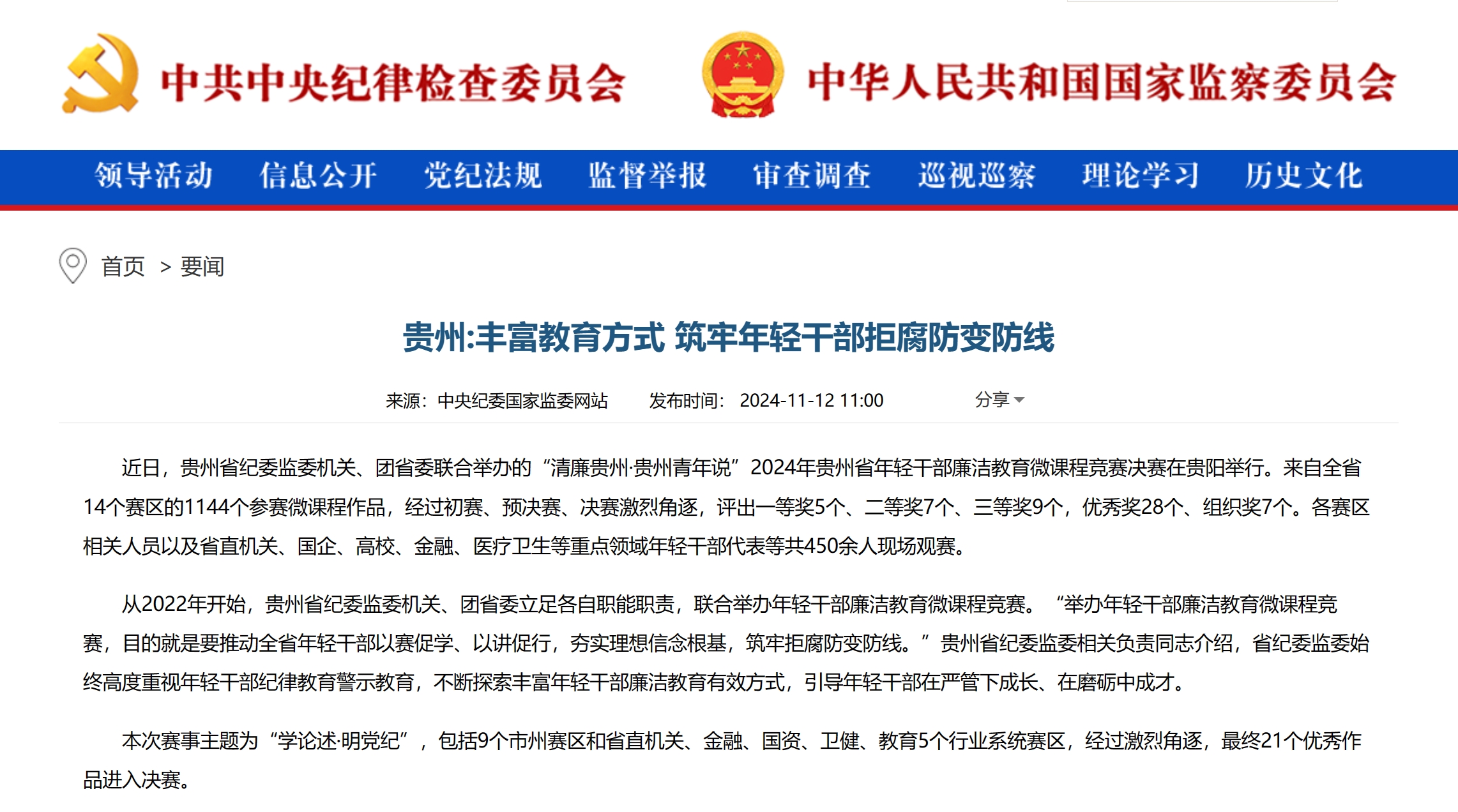 中央纪委国家监委网站|贵州:丰富教育方式 筑牢年轻干部拒腐防变防线