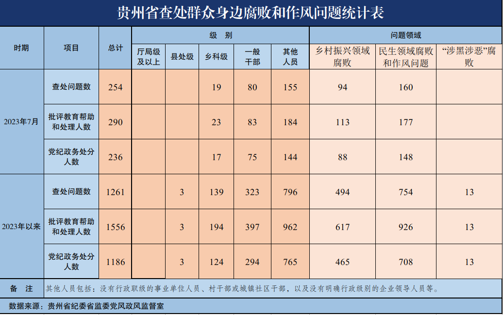 2023年7月贵州省查处群众身边腐败和作风问题254起