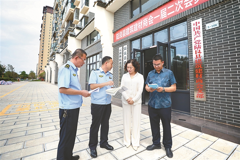 云南省陆良县市场监管部门围绕民生发展重点领域,深入行业协会组织开展反垄断法宣传活动。图为近日,该县市场监管局工作人员到建筑建材商会宣传反垄断法。 王勇 摄