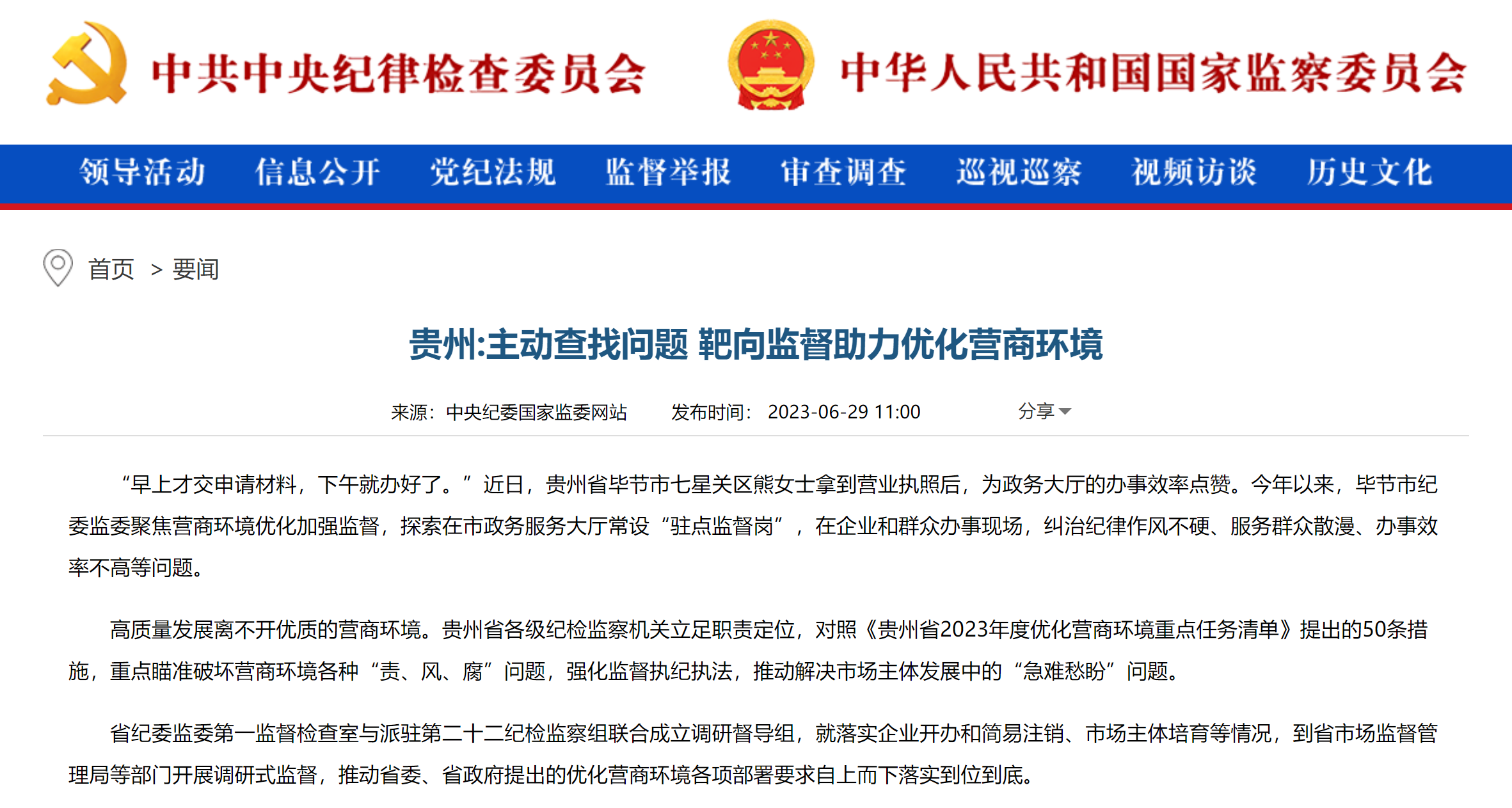 中央纪委国家监委网站丨贵州:主动查找问题 靶向监督助力优化营商环境
