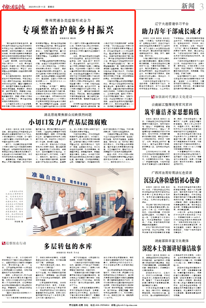 《中国纪检监察报》“新闻”版头条、中央纪委国家监委网站| 贵州贯通各类监督形成合力 专项整治护航乡村振兴