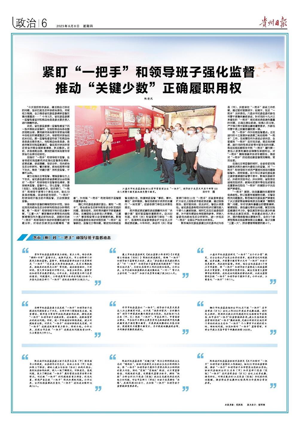 《贵州日报》头版、“党风廉政”专版| 紧盯“一把手”和领导班子强化监督 推动“关键少数”正确履职用权