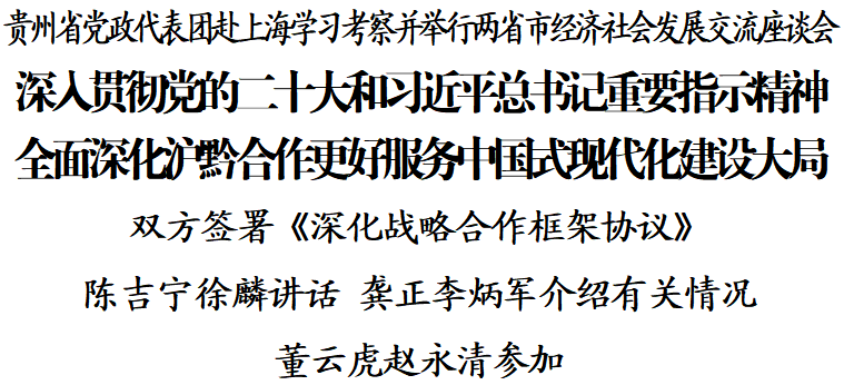贵州省党政代表团赴上海学习考察并举行两省市经济社会发展交流座谈会