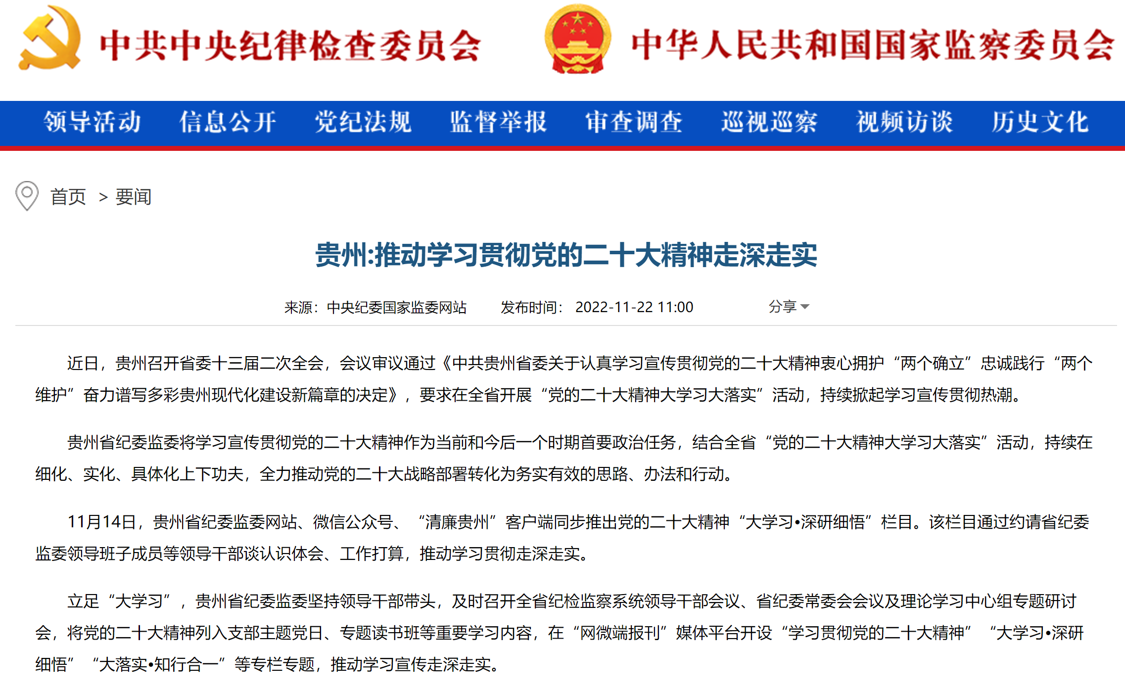 中央纪委国家监委网站丨贵州:推动学习贯彻党的二十大精神走深走实