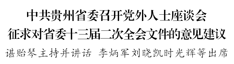 近日,中共贵州省委召开党外人士座谈会,就省委十三届二次全会文件听取各民主党派省委、省工商联负责人和无党派人士代表的意见和建议。