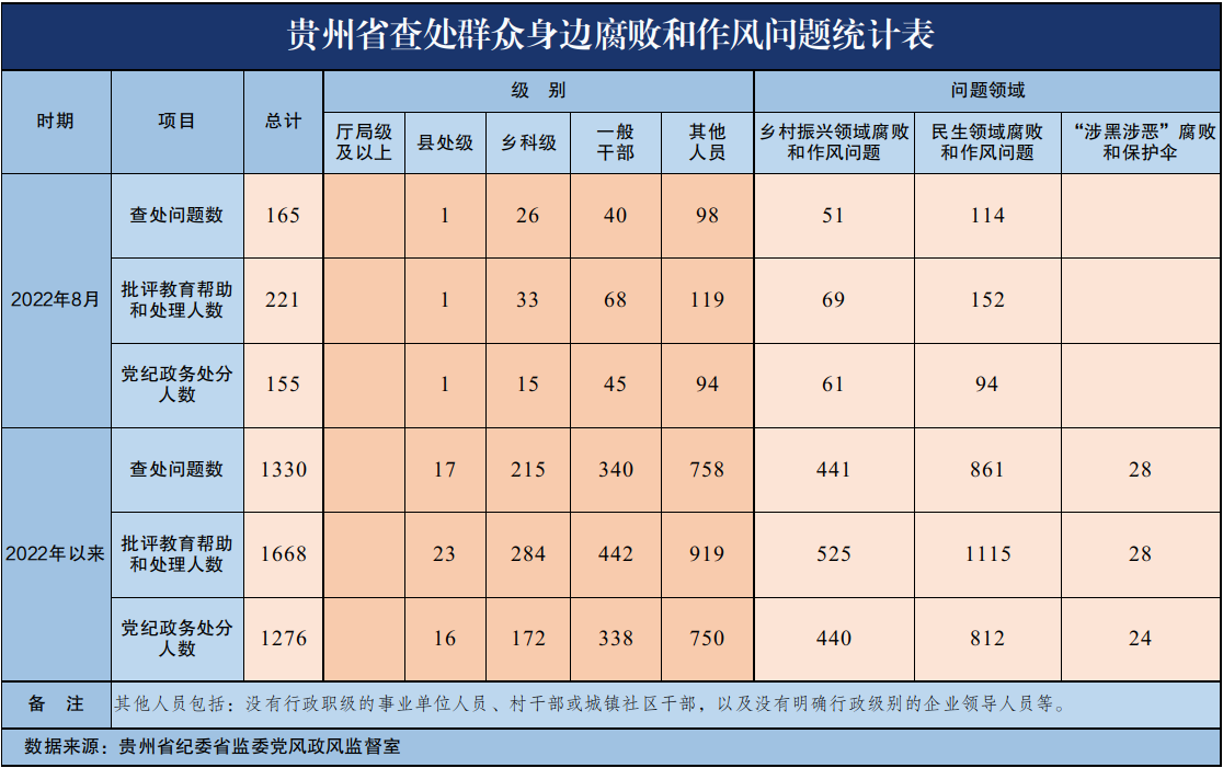 今年8月贵州省查处群众身边腐败和作风问题165起