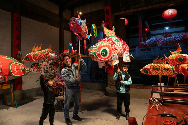 安徽省歙县澹淇村的鱼灯舞传承久远。裱鱼灯、练步伐、比舞技,人们趁着冬日闲暇为正月的表演做着准备。(安徽省绩溪县纪委监委供 章晓璇 摄)