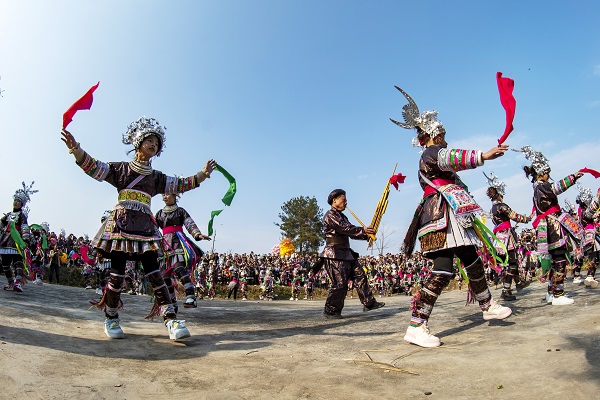 大寒一到,年味渐浓。贵州省从江县尧等村的苗族群众身着民族盛装,吹奏芦笙、跳芦笙舞,迎接远道而来的客人们。(贵州省黔东南州从江县纪委监委供 吴德军 摄)