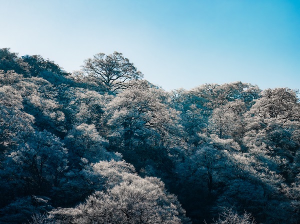 大寒时节,在广西壮族自治区灌阳县的雷王殿山上,树木身披洁白的冰霜铠甲,阳光洒落,尽显大自然的鬼斧神工与冬日之美。(广西壮族自治区灌阳县纪委监委供 陆亮亮 摄)