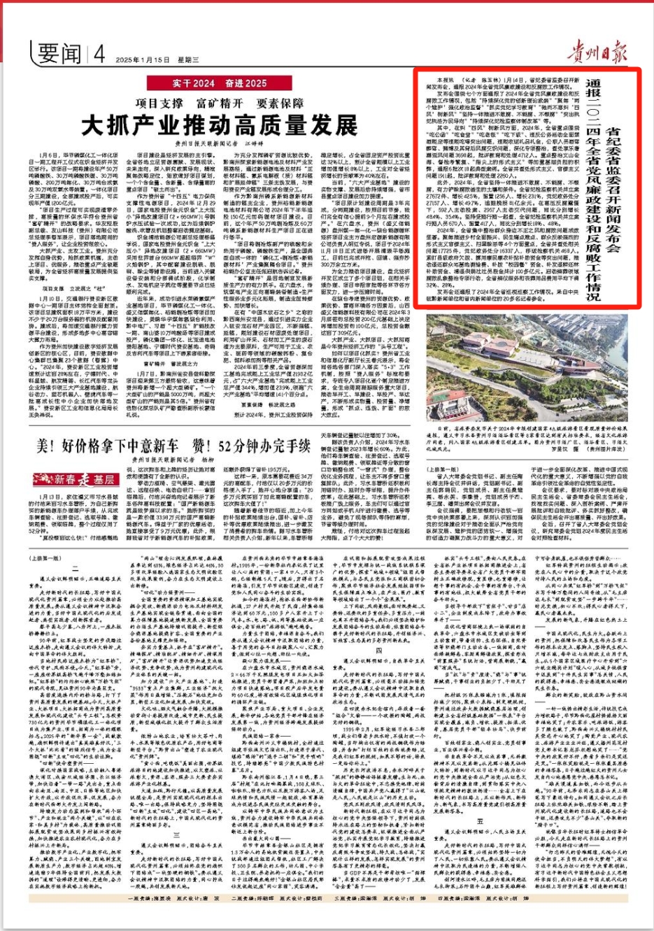 《贵州日报》|省纪委省监委召开新闻发布会通报二〇二四年全省党风廉政建设和反腐败工作情况