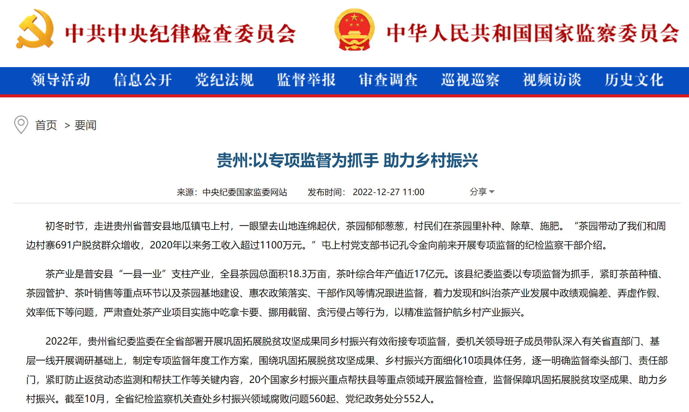 中央纪委国家监委网站 | 贵州:以专项监督为抓手 助力乡村振兴