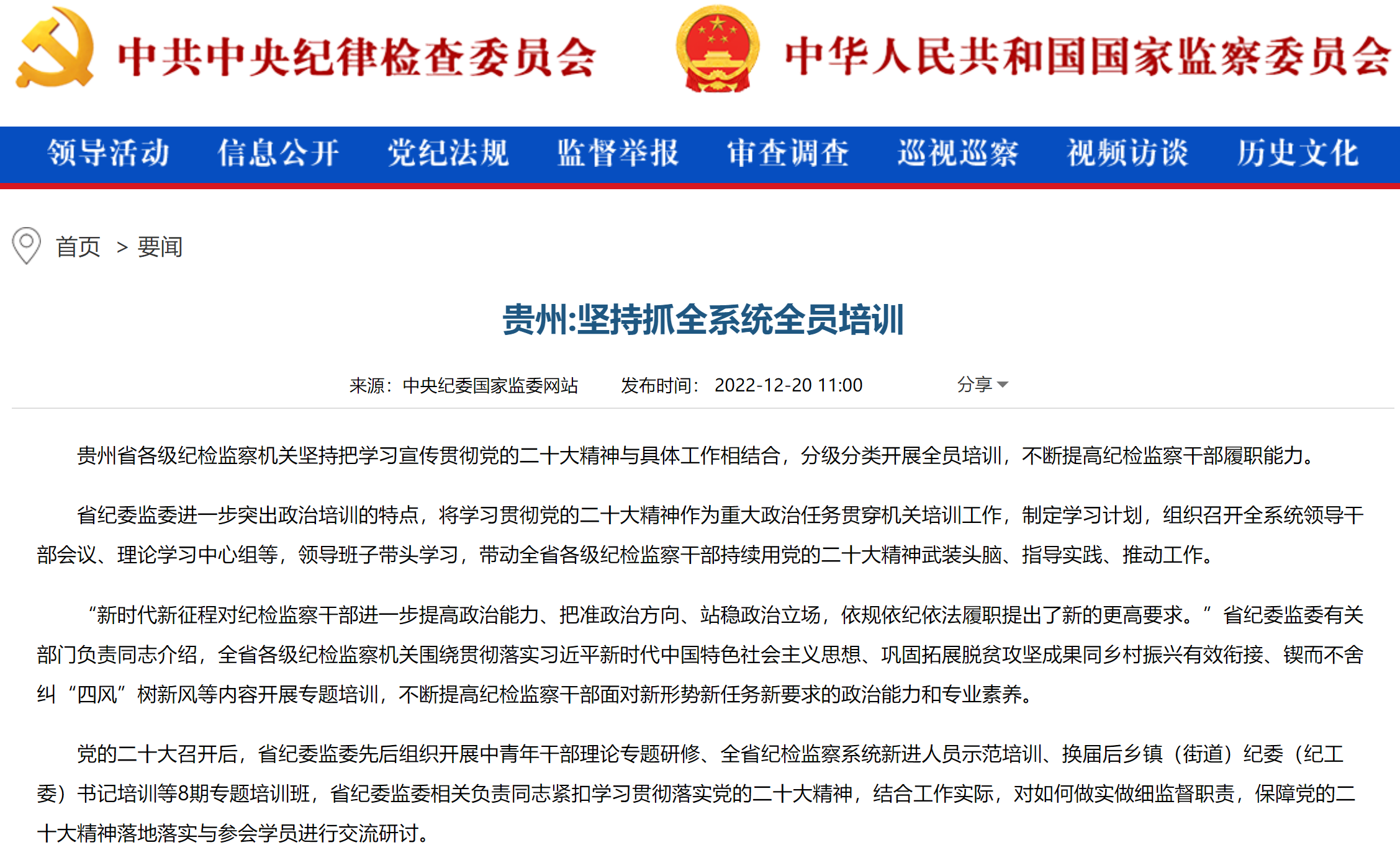 中央纪委国家监委网站丨贵州:坚持抓全系统全员培训