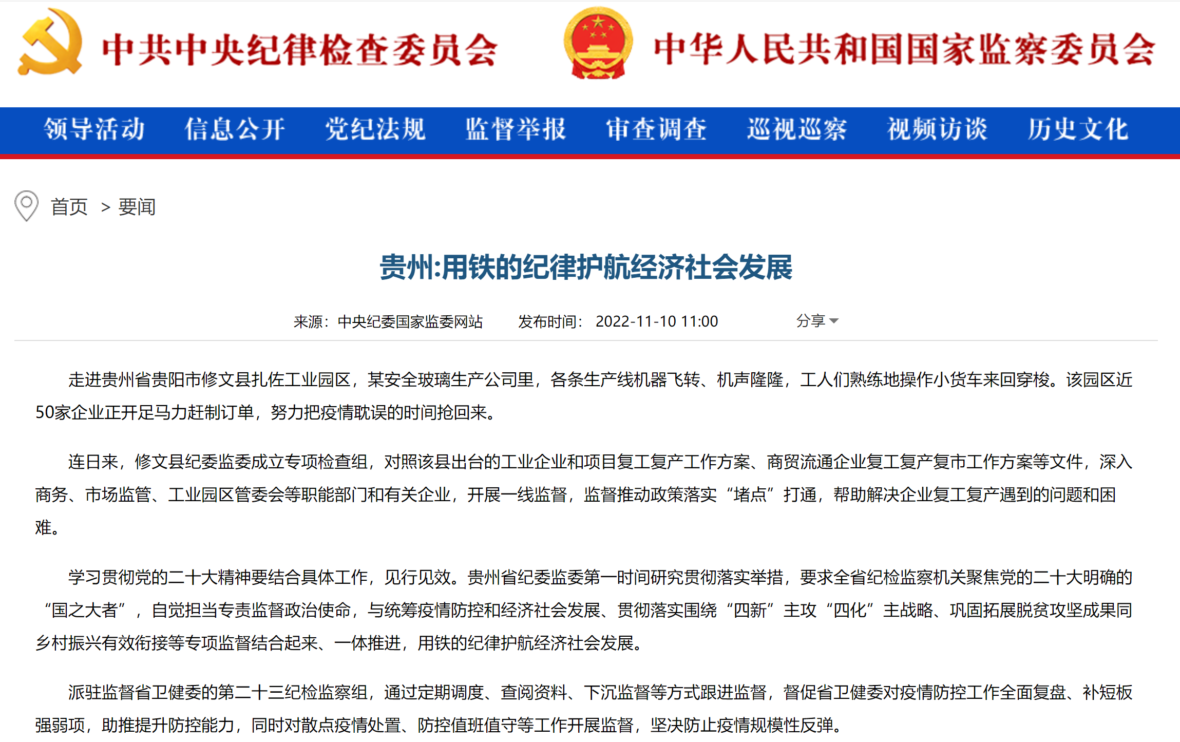 中央纪委国家监委网站 | 贵州:用铁的纪律护航经济社会发展