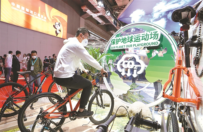 “绿色、环保、可持续”随处可见,进博会上刮起了一股“绿色低碳风”。本届进博会现场,能源低碳及环保技术专区展览面积增至2万平方米。在其他展区,参展企业也更加注重绿色、循环、低碳理念和技术的推广与落地,绿色的新产品、新技术、新服务备受关注。从外卖餐具使用的可回收全降解材料,到面膜使用的环保可降解可回收纺织原料;从废旧塑料制成的服装,到生态设计山地自行车;从“零碳城市”、海绵城市建设,到水环境综合治理设备;从工业循环水处理技术,到针对村镇特点开发的污水一体化处理装置……绿色低碳、循环利用、可持续发展等理念在众多展区体现,彰显智能化、绿色化、低碳化的生活方式。