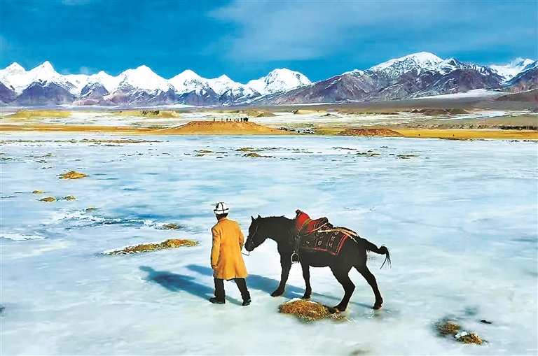 阿布都加帕尔·猛德在牵马巡逻。