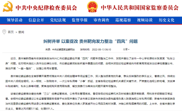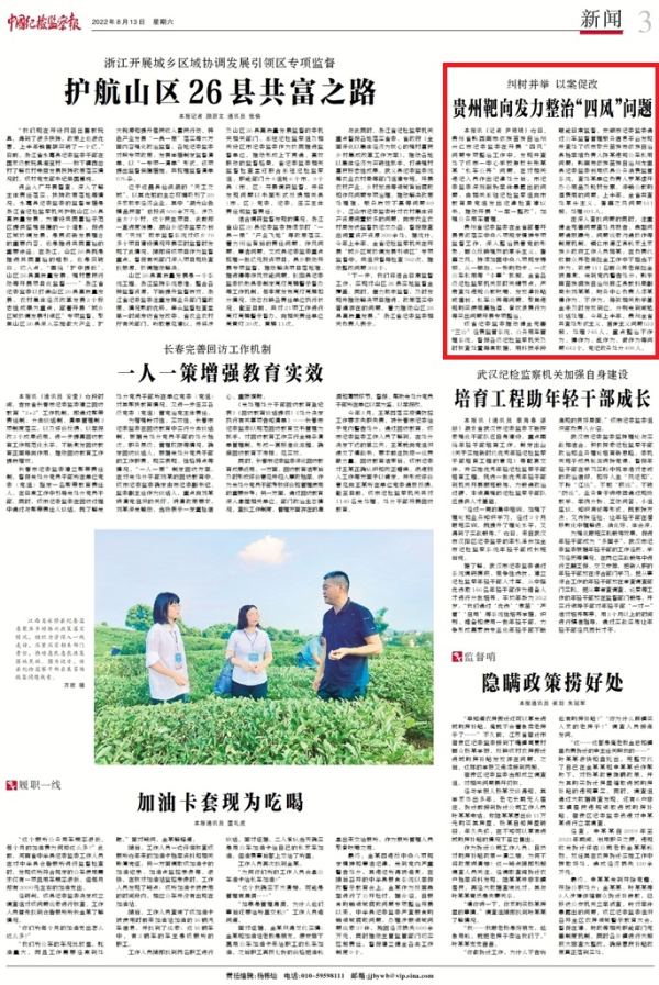 《中国纪检监察报》“新闻”版、中央纪委国家监委网站|纠树并举 以案促改 贵州靶向发力整治“四风”问题